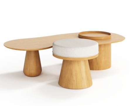 Mesa de Centro Ello + Puff CCL, Estrutura em sarrafeado laminado em madeira nobre de cinamomo, com pintura em