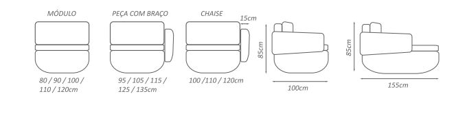 Sofá Living Borelo Ferrari, fabricado com assentos em espuma soft D28 e molas, encosto com fibras siliconadas.