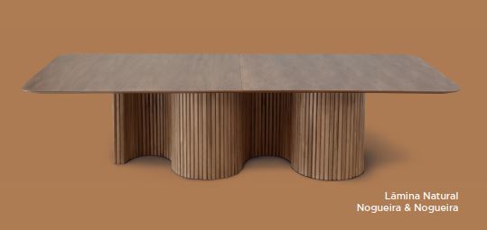 Mesa Piu Carppen, fabricada em madeira com as opções retangular, oval, quadrada e redonda.